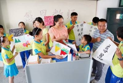 教师节前学感恩 9月9日,应城市特殊教育学校的聋哑学生在向自己最心爱的老师赠送亲手制作的礼物。该校在教师节来临之际,对学生开展感恩教育,号召学生将亲手制作的手工、绘画、书法等作品送给自己最喜欢的老师,感谢老师对自己的悉心教导。 徐文 刘振宇 摄