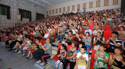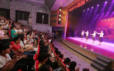 9月8日晚,位于原襄阳市豫剧院院内的艺术小剧场里座无虚席,附近市民走进小剧场,观看小剧场装修改造后的首场演出——纪念抗日战争胜利70周年专题晚会《民族血魂》。