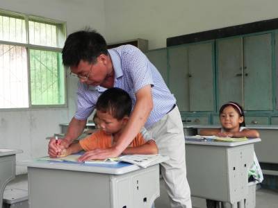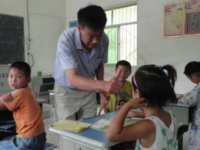 9月9日,在十堰市郧阳区青曲镇王家山教学点,唯一的教师易云州,正在教4个孩子读“a、o、e……”。58岁的他从教40年,18岁参加工作至今,先后在孙家湾教学点和王家山教学点任教,历经学校由大到小的变迁,他始终爱岗敬业、严谨治学。如今,易云州老师的肺部、腰部、肠胃等多个部位疾病缠身,并患有高血压,他每天边吃药边工作。备课、上课、批辅、活动等一样都不少,同其它大学校一样规范。学期统考,学生测试成绩每年都排在全镇第一名。“教好书、育好人,是老师的天职。”易云州说,还有一年多他就要退休了,他要站好最后一班岗。