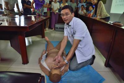 急救知识进机关 9月11日,宜都市枝城镇政府会议里,宜都市第二人民医院的医生在为40多名机关干部讲授急救知识。专业急救医生讲授了野外遇险与急救、气道异物梗阻急救、心肺复苏急救等知识。并现场演示心肺复苏、气道异物急救操作过程。视界网冉德强摄