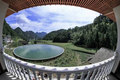 图为恩施市龙凤镇青堡村下坝组村民家门前的大水池。近年来,国家投资给边远乡村人畜饮水困难的地方修建起了安全饮用水池,彻底解除了这些地方村民饮水的心头之痛。大水池犹如一面镶嵌在深山中的明镜,鉴证了政府为民办实事的功德。