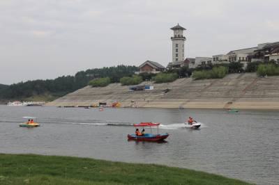 9月13日,丹江口市民来到沧浪海旅游港划船、冲浪、钓鱼、摄影、欣赏美景,享受双休日快乐。