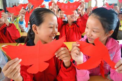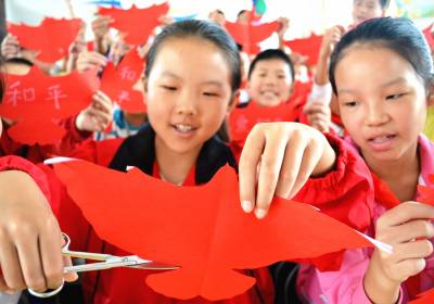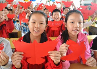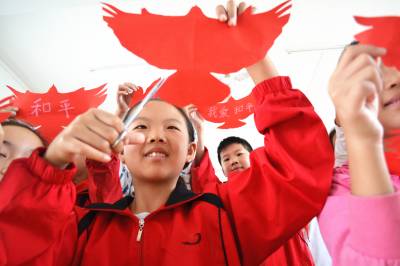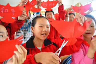剪红鸽 爱和平 9月14日,在湖北省十堰市郧阳区柳陂镇中心小学,小学生剪出了各种“红色和平鸽”,象征着对和平的向往。 当日,“牢记侵华日军‘九一八’侵略暴行84周年暨‘国际和平日’主题集会”在该校举行,1000余名师生共同回望了被视为国耻的“九一八”历史,上了一堂生动的爱国主义教育课,孩子们还亲手剪出了各种“红色和平鸽”,象征着不忘国耻、振兴中华、向往和平。 (供稿:湖北省十堰市郧阳区柳陂镇中心小学 杨显有 13277199605 442532)
