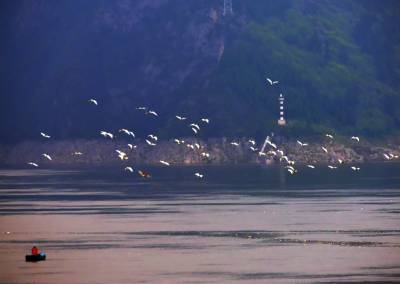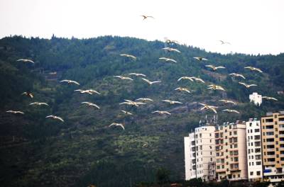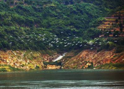 9月14日,一群群南迁的候鸟在长江巴东段水面自由翱翔。初秋时节,近千只候鸟一拨又一拨的来到长江巴东段江面,成群的候鸟或顺江低空盘旋,或飞入江边林中寻觅树果,给江城巴东添上一幅祥和美景。 据当地居民介绍,每年这个季节都会有南迁的鸟儿从这里经过,但今年在巴东作短暂停留候鸟比往年要多,这与当地生态环境、森林植被分不开,虽是过眼美景,却让人十分欣喜。(视界网 王祖满摄 15272999779)