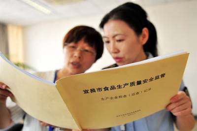 2015年9月14日,在国庆佳节即将到来之际,宜昌市夷陵区食品药品监督管理局牵头分乡、黄花、龙泉、鸦鹊岭4个乡镇食药监管所,组成的联合执法小组在龙泉镇开展区域执法行动,联合“出拳”呵护舌尖上的安全。此次执法重点对辖区内食品生产企业进行日常巡查和监督抽检,检查企业厂区、原料库、加工包装车间、成品库等重点场所, 对企业的必备生产条件、执行标准、产品标识、原材料把关、生产过程控制、产品出厂检验等进行全面检查。对于检查中发现的问题,现场责令企业采取措施进行整改。