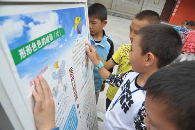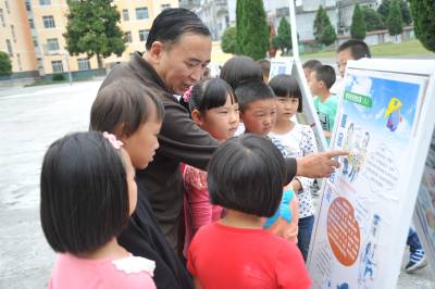 9月14日,鹤峰县邬阳乡民族中心学校,老师利用宣传展板为学生讲解形形色色的垃圾污染对自然环境造成的危害以及如何防治等绿色环保知识。 秋季开学以来,该县各中小学通过主题班会、国旗下的讲话、宣传栏等形式加强“六城”同创的知识宣传教育,广泛开展志愿服务、生态文明校园创建、小手拉大手等活动,引领师生及群众积极参与“六城”同创,共建美丽家园。