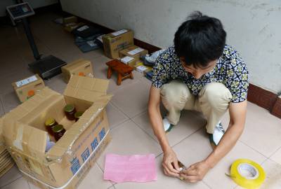 9月15日,秭归县沙镇溪镇三星店村的电子商务经营户梅旭丰正在自己的门店里忙碌。