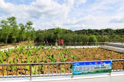 9月16日,竹山县麻家渡镇总兵安村一组村民正在观察门前新建的人工湿地里美人蕉的长势情况。农村生活污水分散、处理困难,即使建起污水处理厂,也因高成本制约,难以正常运行。为有效解决这一老大难问题,该县结合“内修人文,外修生态”建设,大力推广人工湿地等农村环保实用技术,就地治理生活污水,既经济又特效,成为守护农村水环境的“超级武器”。