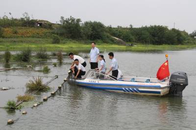 今年初,安陆市烟店镇双岭村村民蒋某擅自在府河青龙潭水域违法拦网1000余亩进行水产养殖,严重妨碍了河道航运畅通,污染了水体生态环境,并拒绝履行安陆渔政站的行政处罚决定。安陆市人民法院依法受案后,认定行政处罚行为合法,遂向蒋某下达了限期执行通知书。在法官的教育督导下,蒋某认识到了错误,主动拆除了全部拦网设备。图为9月10日蒋某在法官的监督下,拆除拦网。(视界网 黄爱东 董志新) 作者通联:安陆市委宣传部 13886355004