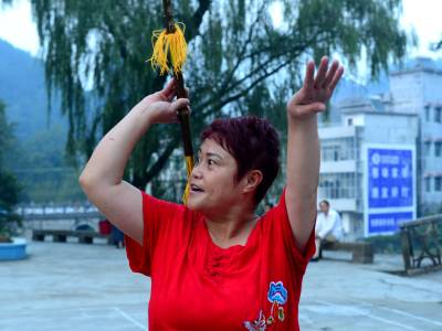 莲湘舞适合男女老少练习,表演中,其唱词唱腔在动情时,催人泪下,抒情时轻松悠扬。其道具的舞动,配合跳跃翻滚时,不仅节奏鲜明和谐,且如巨龙翻身,令人眼花缭乱,气势如虹。