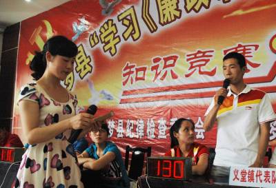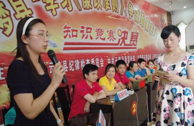 6月2日,在云梦县举行的学习《廉政准则》、争做勤廉表率知识竞赛决赛中,选手在抢答问题。参加决赛的8支代表队是从全县预赛的20支代表队中脱颖而出的。通过竟赛,加深了党员干部对党纪党规的理解,增强了廉洁从政的意识。(本报视界网王云清摄)