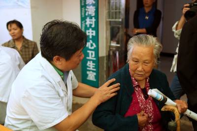 9月18日,秭归县政协组织县人民医院专家,冒雨来到归州镇向家湾村,开展送医送药到基层义诊活动,为广大村民在家门口提供贴身贴心的医疗服务。(本报通讯员 王双剑摄)