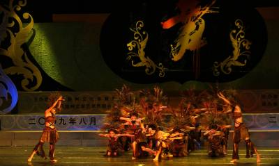 茅古斯舞是土家族古老而原始的舞蹈,土家语称为“古司拨铺”,[1] 大意即“浑身长毛的打猎人”,汉语多称为茅古斯,是舞蹈界和戏剧界公认的中国舞蹈及戏剧的最远源头和活化石,从其服饰、道具到表演形式、表演内容,茅古斯真实地再现了父系社会至五代时期土家人的渔猎、农耕生产生活及婚姻习俗状况。“茅古斯”们赤身裸体的肌肤上扎满了茅草,每股五块,腹前捆有一条尺余长并用红布包头的草把,结草为衣以示先民不会织布做衣,腹前所捆之物代表人类生产一种的繁衍工具。