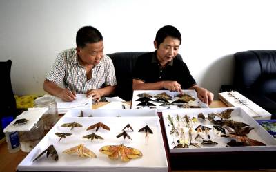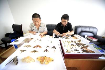 9月21日,竹山县林业技术员在制作昆虫标本并登记。为全面掌握林业有害生物的分布种类、寄主植物、发生范围 、发生面积、危害程度、传播途径等情况,竹山县组建调查专班采取线路踏查与详细调查相结合的方法,采用白天扫网、夜间灯诱调查方式,对植物病害及昆虫进行采样收集,拍摄大量图片资料,收集到大量昆虫。制作、鉴定了部分植物病虫害标本。目前,竹山县采集昆虫58种,制作标本532个。(视界网程平 摄) 地址:竹山县林业局 电话:13872773800 邮编:442200