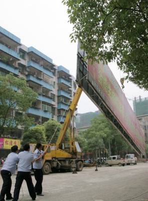 > 迎省运拆除跨街广告牌
