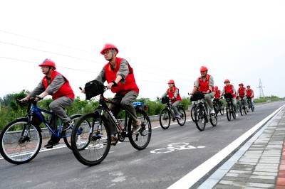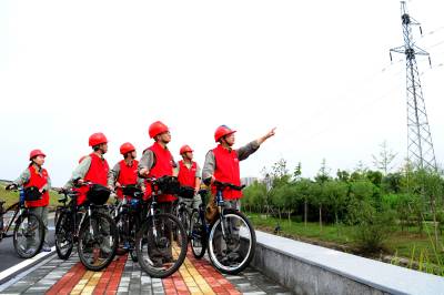 9月25日上午,国网老河口市供电公司“轻骑先锋”共产党员服务队的队员们骑上单车,对110千伏河王线进行巡视。该线路是连接王甫洲水电站与老河口城区110千伏变电站的“主动脉”,队员们通过骑单车巡视,及时发现铁塔鸟巢等安全隐患,全力保障城区中秋节、国庆节期间安全可靠用电。
