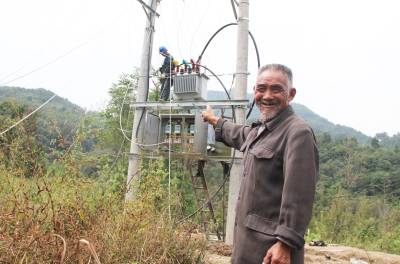 农村配网升级乐坏深山农家 9月25日是,地处大山深处的谷城县紫金镇沈垭村农民沈年成、郭百义指着新架的变压器、水泥电杆,将要“下岗”木电杆、拆股线高兴的合不拢嘴。今年,国网谷城县供电公司将投入1.9亿元资金,对农村配网升级改造。此工程将使该县270多个村的40多万农民受惠。 视界网马明刚摄