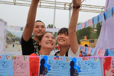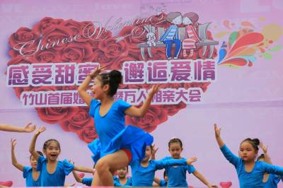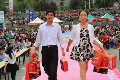 9月26—27日,由县妇联主办、县薇薇新娘婚纱摄影公司承办的“感受甜蜜、邂逅爱情、相约中秋”竹山首届婚博会暨万人相亲大会在竹山“滚动地带”——堵河广场落下帷幕,全县200多名社会大龄青年和农民工报名参加了这次意义非凡的相见、相知、相识、相爱活动,9对高龄农民工在活动中找到了自己心仪的对象,牵手成功!这次活动旨在解决社会龄青年和农民工结婚难题。薇薇新娘、国际绿松石城等14家企业联合演绎了中、西式婚礼秀和婚纱走秀等璀璨之夜,吸引全县万名群众驻足观看。