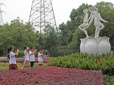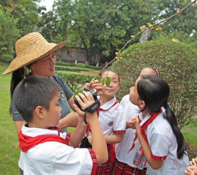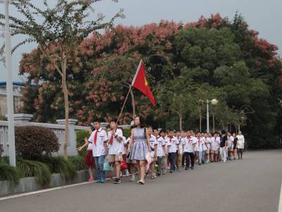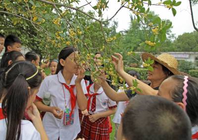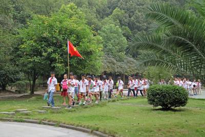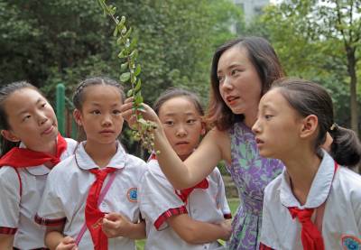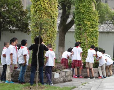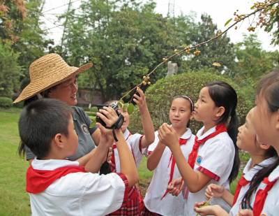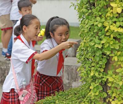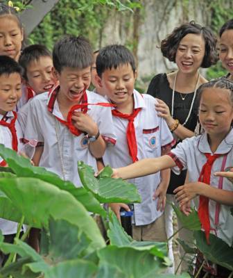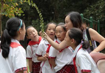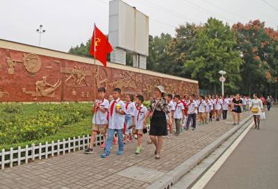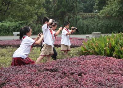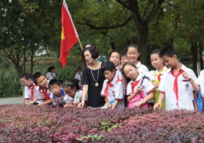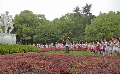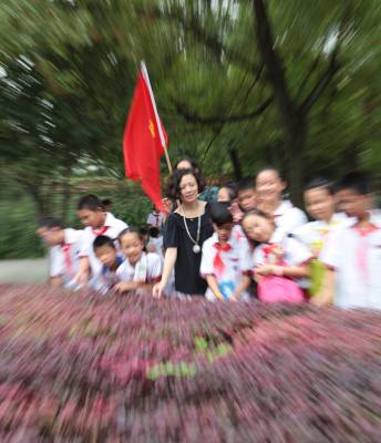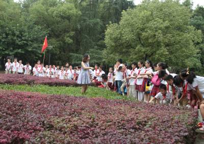9月28日(星期一)下午,是宜昌西陵区葛洲坝实验小学学生社团活动的时间,该校五年级三班的52位同学在德育处曾华主任及班主任等老师的带领下,连同该班的家长代表一道,排着整齐的队伍,举着少年先锋队队旗,浩浩荡荡地来到了位于葛洲坝船闸旁的葛洲坝公园。他们是在公园的专业人员指导下,来识别园内的各种植物的。