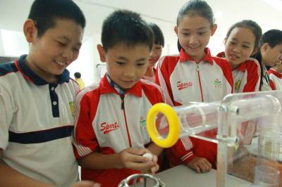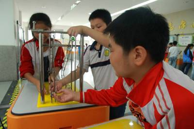 (通讯员苌晓昱摄影报道)9月28日,南水北调中线工程水源地湖北省丹江口市实验小学新港校区的200余名小学生被一件件动感十足的互动性科技展品所吸引。(图)同他们一样,当地一万余名中小学生将在为期一个多月的"体验科学--中国流动科技馆"中享受到名副其实的科技大餐。