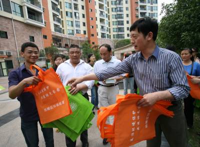 6月3日,宜昌市西陵区环保局把2万个可重复使用的环保袋及近万册环保宣传手册分发到石板溪等城区各社区居民手中,发起了低碳减排,全民争做文明宜昌人的宣传活动。视界网刘明强摄