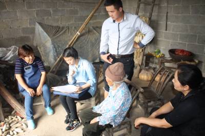 鹤峰科协在容美镇庙湾村对38贫困户进行精准信息调查,与贫困户一道逐户制定脱贫计划和措施,分户制定帮扶措施,充分利用科普知识扶贫,增强贫困户脱贫科技意识。图为9月30日,鹤峰县科协干部下到因病致残鲁燕家里,送养猪科技知识,进行国庆节慰问。(湖北视界网:何吉安)