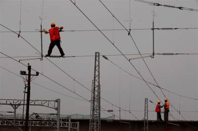宜昌东站电气化主体工程完工2010年6月3日,中铁电气化局工人在宜昌东站进行电气化接触网调试。湖北省宜昌东站电气化主体工程基本完工,为今年6月底建成开通赢得时间。宜昌火车东站是宜万铁路控制性工程,宜昌东站电气化开通标志着宜昌告别内燃机车,结束不通电气化铁路历史,迎来动车时代。同时,为宜万铁路拟于9月30日完成全线电气化主体工程奠定良好基础,以保证年底宜万铁路的运行通车。文振效、汪文富