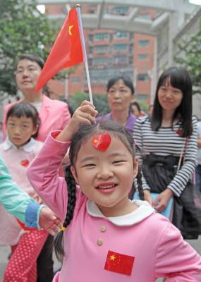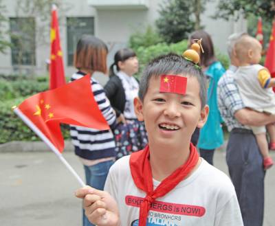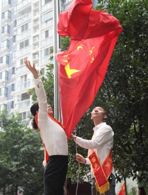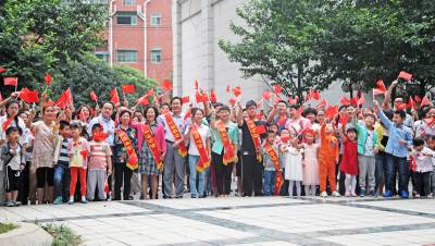 高耸的楼房,整洁的小区,鲜艳的国旗掩映在绿树丛中格外夺目。孩子们脸上贴着国旗,手上举着国旗,和爷爷奶奶、爸爸妈妈一起参加庄严的升旗仪式,脸上写满了快乐与幸福。小区的业主们常说,自己能在这样的中心小区安居乐业,要感谢党,感谢祖国。只有国家越强大,越繁荣,老百姓的日子才能过得越滋润,越美满。(视界网 丁朴 15872456099)