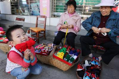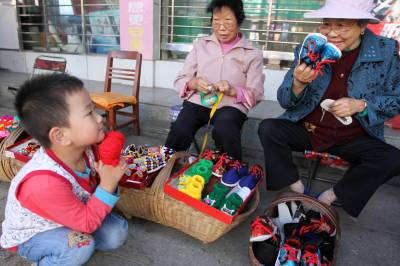 10月1日,房县城关镇老城社区居委会留守妇女杨巧云(右)在手工制作幼童布鞋。该县留守妇女手工制作的幼童布鞋、毛线祙,源于祖祖辈辈传承,她们利用巧手制作的幼童鞋祙,工艺考究、耐用、保暖和透气性好,被誉为当地标志性地特产品之一,格外养眼外地游客,争相购买,大大拓宽了该县留守妇女的就业和增收渠道。