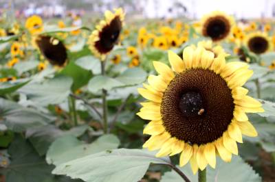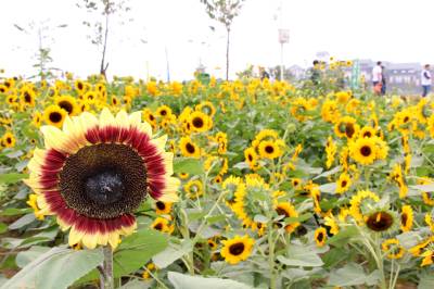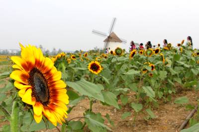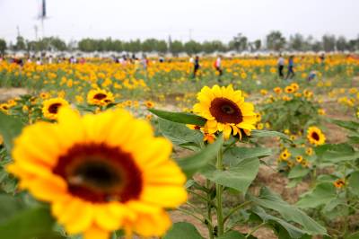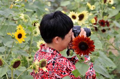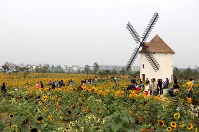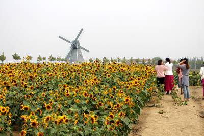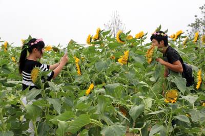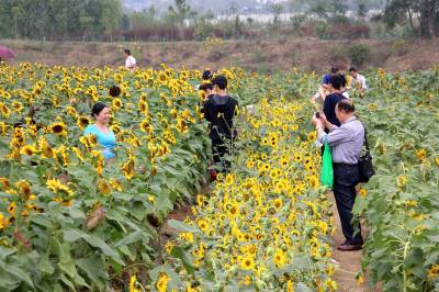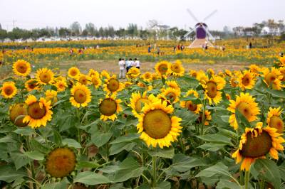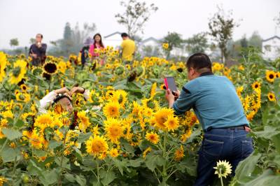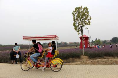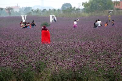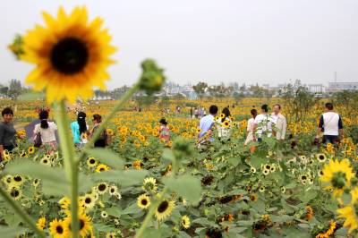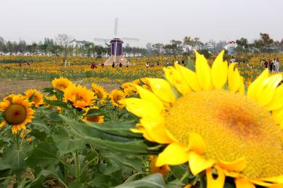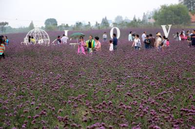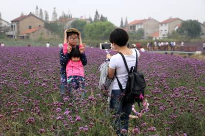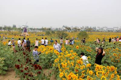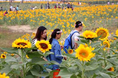 2015年10月5日,位于孝感市孝南区朋兴乡的金卉庄园游人如织,众多游客在庄园观赏葵花、薰衣草、马鞭草,与大自然亲密接触,与鲜花合影留念。金卉庄园首届“向日葵•薰衣草”赏花节于9月19日在孝南区朋兴乡开幕,300亩七彩向日葵和300亩浪漫薰衣草、马鞭草等花卉同期绽放。花海中,各式老爷车、热气球、玻璃教堂、荷兰风车、田园火车等近百组景观错落有致,全景展现了浪漫如普罗旺斯的花海乐土。美丽的鲜花、动人的花语、缤纷的活动,让游客感受到了“花海盛景”的极致魅力。国庆期间,这里每天游人如织,来自孝感、武汉、河南等地数万游人在这里赏花游玩,度过一个开心愉快的国庆节。本报视界网 陈保忠 摄