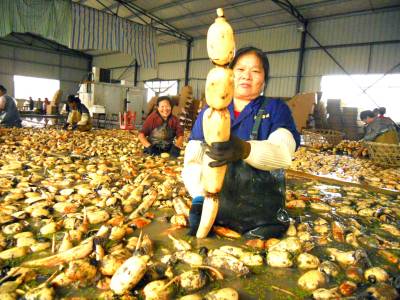 日前,汉川市麻河镇日产“麻河牌”富硒莲藕30多吨,其产品俏销港澳、新家坡、日本及东南亚各国。图为10月7日国庆节期间“汉川市宏发藕行”的员工们正在清洗、整理即将装车出售的富硒鲜藕。 签约摄影师 邹开建 刘惠平摄 通联:汉川市委宣传部 电话:13197382491 邮编:431600