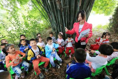 10月8日,竹山县宝丰镇施洋小学附属幼儿园教师在校内植物园里给孩子们讲环保小故事。为增强幼儿的环保意识,该园将环保教育渗透到教学过程中,与学生的德育教育、行为习惯教育和法制安全教育等有机结合起来,定期开展“绿色发展,爱我家园”等系列环保宣传教育活动,教育幼儿从小节约资源、爱护环境,争当环保小卫士。