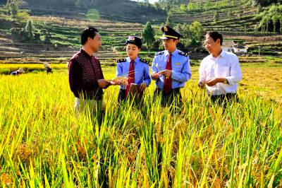 10月11日,秭归县工商局干部走进该县唯一少数民族村石柱土家族村的田间地头,向当地圣天农民专用合作社社员宣传商标使用、商标保护等相关知识。