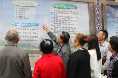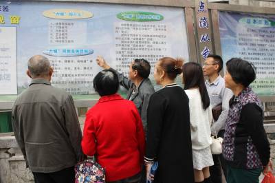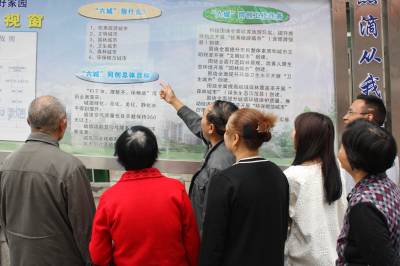 13日,在鹤峰县容美镇连升路升“六城”同创的科普画廊前,人们住步观看“六城”同创知识。这是鹤峰县科协和容美镇白鹤井社区联合开展“六城”同创知识画廊。 今年来,鹤峰县委和政府开展“六城”同创,聚力推进主街大道大升级、背街小巷大整治、城市功能大完善和全城绿化美化等工程,聚力打造美丽山城。(湖北日视界库何吉安)