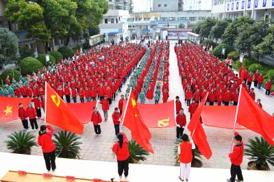 10月13日,湖北省十堰市郧阳区“中国少年先锋队建队66周年——我是向上向善好队员”主题队日活动在该区柳陂镇中心小学举行,上千名小学生和区团委、区文明办、区教育局等领导参加,通过千名小学生热情传递党旗、国旗、团旗、队旗,象征着“红色旗帜代代相传,冉冉火炬永放光芒”;通过重温队誓词、高唱国歌、队歌、价值观歌、诗歌朗诵、以及新队员示范入队仪式、佩戴红领巾,增强少先队员组织的光荣感、归属感,喜庆中国少年先锋队建队66周年。