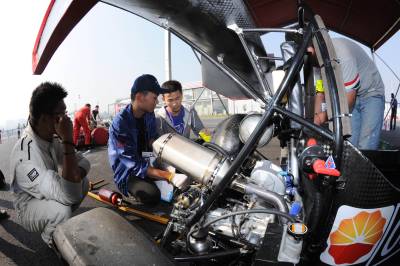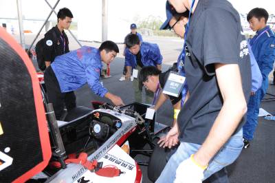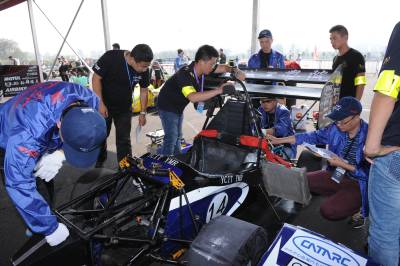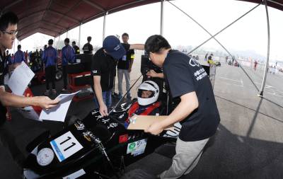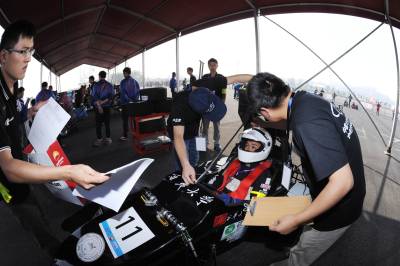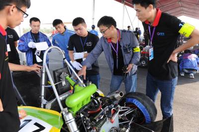 10月14日上午,2015FSC大赛静态项目在湖北襄阳梦想赛场紧张进行,在技术检查区,所有赛车都必须先通过一检、二检、三检,检查项目包括车手逃生、车身外观、车手装备、噪声、称重、传动系统和电气系统等14项内容,在取得相应的车检标志后才能进去动态练习。车检不能通过的赛车需要改造后重新进行车检,所以早一步通过车检对车队意味着可以早一步进去动态练习,为后续比赛加分。