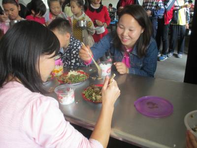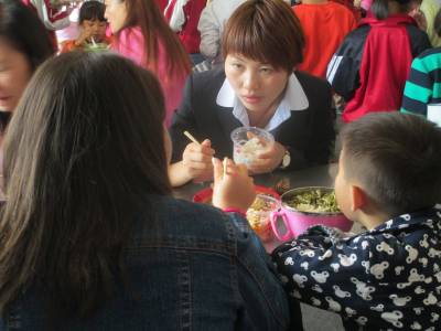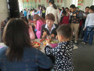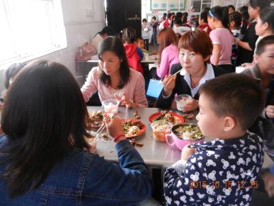 竹山:饭菜质量怎么样家长来评判 10月15日中午,竹山县潘口小学食堂里,几名家长和学生一起就餐(如图)。为办好人民满意的学校。今秋,潘口小学启动“明厨亮灶”工程,每日邀请3至4名学生家长参观学校食堂,观看食品加工流程,品尝饭菜质量,参与学校食堂监管,并对食堂所采购的食材、环境卫生条件、工作人员服务态度、食堂台账等进行监督,从而促进该校努力提高食堂饭菜质量,全面提升后勤管理水平。(视界网 王定生 摄)(联系电话15347279289)