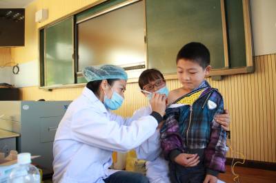 10月14日,恩施市沙地卫生院医护人员正在对辖区内托幼机构、中小学学生及教职员工接种伤寒疫苗。 据悉,此项接种工作旨在落实伤寒防控,提高人群免疫覆盖率,有效控制伤寒传染病的流行。为做好疫苗接种工作,该院开展了多种形式的宣传活动,严格遵循“知情同意、自愿自费、安全接种、定点接种”原则,让儿童家长了解伤寒疫苗接种意义,积极参与配合,并签署了知情同意书,当天共接种500余人。(视界网 通讯员 谭华 摄)