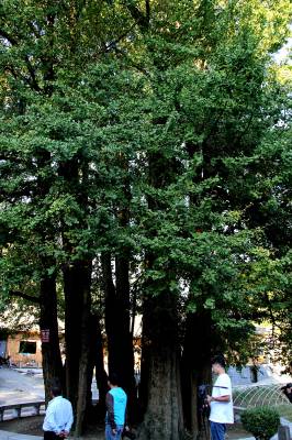 千岁古银杏“九子抱母”迎客