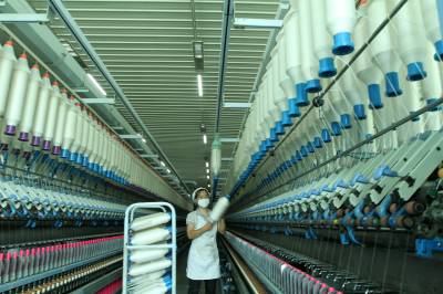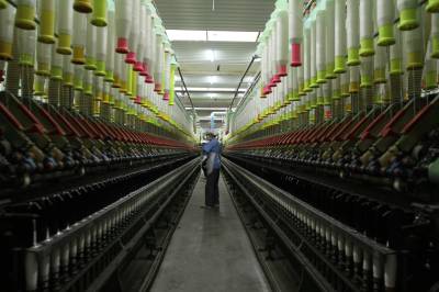 10月16日,房县恒达纺织有限公司工人在纺织车间生产细纱。房县实施“你无我有、你有我强”的企业发展战略,加工生产精品纺织、房陵黑木耳、香菇、电脑配件等工农业产品,抢占欧美市场。1至9月,房县企业生产的精流高支纱、耳菇、电脑配件产品,俏销美国、德国、韩国、印度等16个国家和地区,规模以上企业实现产值50.37亿元,完成财政收入40858万元,较上年同期比分别增长18.27%,15.7%。