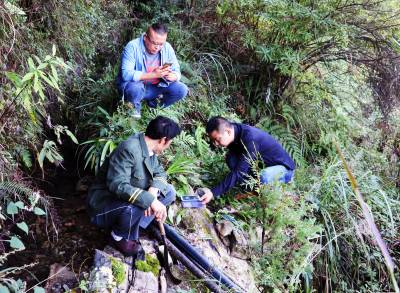 汩汩甘泉润万民 16日,水利水产站工作员在用手机GPS定位测量凉水井村水源点海拔高程。 今年,巴东县官渡口镇加大农村安全引水项目建设,截止10月上旬,36个项目村的水池建设已基本完工,现转战管网配送入户,预计12月底前1万余名群众可全部饮上甘泉。(视界网 梁勇 摄)