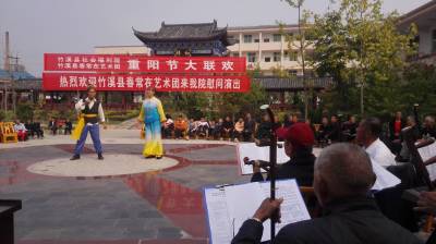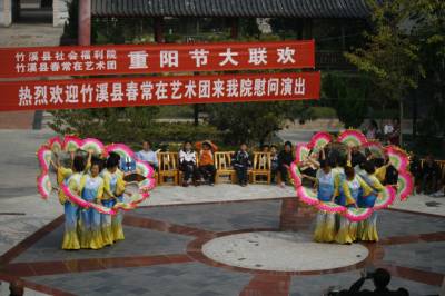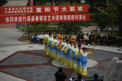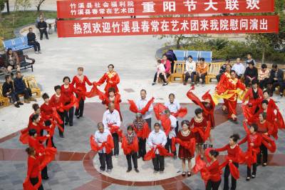 竹溪春常在艺术团赴社会福利院慰问演出 老老同乐迎重阳 10月17日,重阳节将至,竹溪春常在艺术团全体演职人员赴县社会福利院开展慰问演出,为139位院民提高送上节日祝福和文化盛宴。 竹溪春常在艺术团,由20余名离退休的文艺爱好老人组成,年龄最大的73岁,平均年龄64岁。“欢乐别人,开心自己。”艺术团饶团长介绍,“老有所乐是我们的共同追求。能通过艺术这种高雅方式安度晚年,既健康,又开心,还精彩。”( 郭军 摄 )