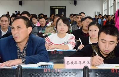 10月17日,一位食品生产企业人员在参加新《食品安全法》知识培训。