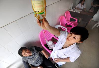 4日,云梦县城关医院朝阳社区卫生服务站医护人员为患者服务。该镇在城区合理设置6个社区卫生服务站,为居民建立健康档案,选派业务精、素质高的医护人员坐诊和上门服务,使社区居民在几分钟时间内,就可在家门口获得优质医疗服务。(记者曲河摄)