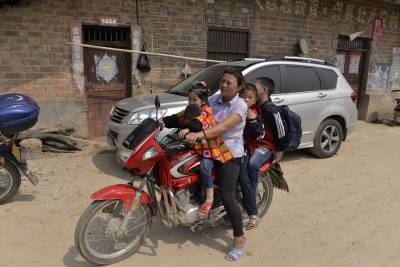 10月18日,在竹山县楼台乡黄龙水电站库区环库路看到,因中小学生上学山高路远,一些“女汉子”学生家长骑摩托车送孩子上学,就便还捎上邻里的孩子,超载驾驶存在不同程度的安全隐患。