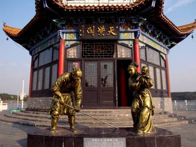 湖北孝感,因董永行孝感天而得名,是全国惟一一个以孝命名、又以孝传名的地级城市。董永,相传为东汉时期千乘(今山东高青县北)人,少年丧母,因避兵乱迁居安陆(今属湖北,属孝感市管辖)。其后父亲亡故,董永卖身至一富家为奴,换取丧葬费用。上工路上,于槐荫下遇一女子,自言无家可归,二人遂结为夫妇。随后女子以一月时间织成三百匹锦缎,为董永抵债赎身。一天返家途中,行至槐荫,女子告诉董永:自己是天帝之女,奉命帮助董永还债。言毕凌空而去。因此,槐荫改名为孝感。如今,走进因董永行孝感天而得名的孝感,探究孝感地名的由来,能我们深深感受到孝文化的浓厚氛围。(祝大桥 摄)