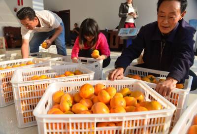 10月20日,建始县红岩寺镇蒿坝村甜柿种植大户米绪东忙采摘。这些年来,由该县老促会牵头,以华中农业大学为技术支撑、恩施鑫地源等公司为龙头,筹集发展基金200万元,通过以奖代补滚动发展方式,目前,全县已发展甜柿8000亩,进入丰产上千亩,每亩丰产期甜柿可为当地农民带来上万元收入,这一产业正成为山里百姓脱贫致富的甜蜜“柿”业。 建始县新闻中心刘波联系电话13032794298
