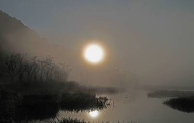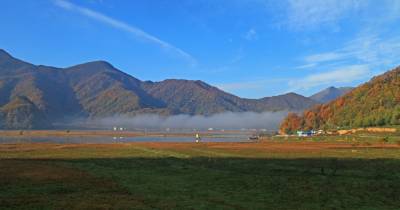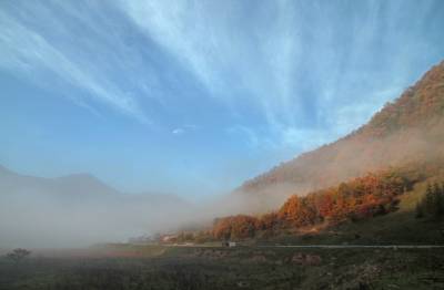 特别是近几年开发出来的大九湖景区,由于是高山草甸湖泊,每逢大晴天的清晨,宁静的湖面必然有一层如烟似纱的薄雾,寒鸟与晨雾齐飞,天光与秋水一色,湖光衬托着周围巍峨的山峰,让人仿佛置身仙境,如幻如梦。