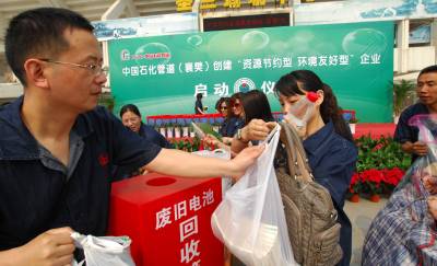 6月4日上午,中国石化管道(襄樊)创建”资源节约型、环境友好型”企业启动仪式上,员工开展资源回收利用,开展节能活动。在国际环保日来临之际,企业开展发展循环经济,建设资源节约型和环境友好型企业,缓解资源紧张压力,改善生存环境活动得到了广大员工的积极拥护。据了解,在国际环保日前,襄樊市许多单位都开展了各项活动,为保护环境尽力。