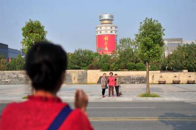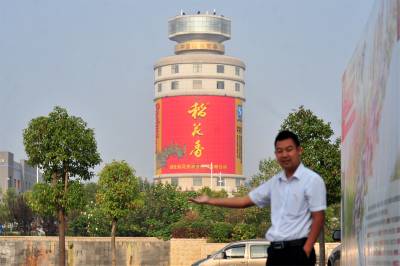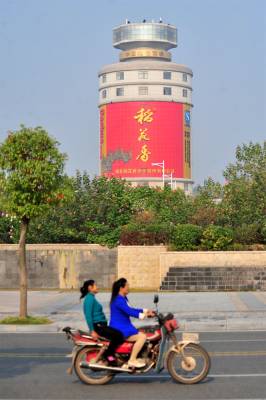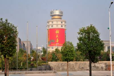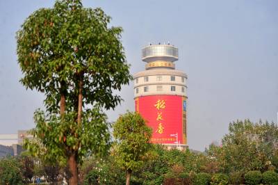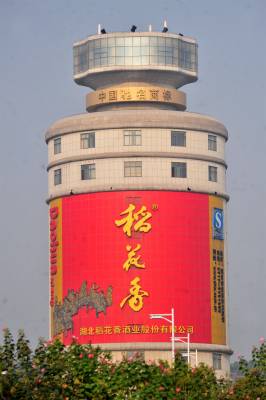 湖北稻花香集团在宜昌市夷陵区龙泉镇工业园依照稻花香珍品一号酒瓶形状特点进行设计兴建的酒瓶造型办公楼,于2009年7月开工建设,2010年12月竣工,楼高56.2米,共13层,建筑面积6259平方米,可容纳300多人办公。如今,该酒瓶造型办公楼已成为当地的一个奇趣地标建筑。视界网 张国荣 摄